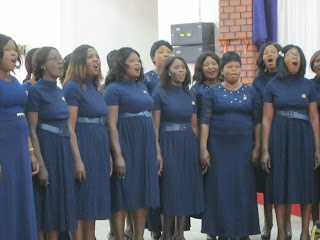 to sing a rendition of 'To God be the glory' (in English and Bemba), to perform a 'self-composition', and to present a piece of advanced musical skill refered to as 'notes'. At least one piece included percussion instruments: drums, a shaker instrument called an icisekese, tambourine, marimba. And no other accompaniment, all a capella. Wow! I enjoyed every minute.